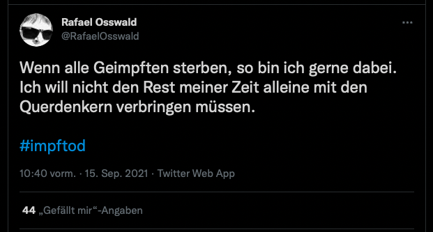Der Impftod scheint ein neues Modewort zu werden. Das Wort war mir schon länger geläufig, auch wenn Word es nicht akzeptiert (vermutlich, weil Bill G. davon nichts wissen will). Impfdurchbruch hingegen ist neu. Es ist die politisch korrekte Umschreibung dafür, dass die Impfung vor einer Ansteckung nicht schützt.