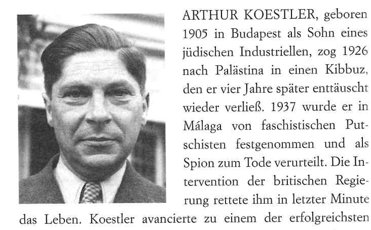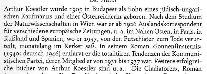 Hübsch auch: Im älteren Text (Fischer-Verlag) begeht Koestler wie in Wirklichkeit Selbstmord. Heutzutage wird das nicht für erwähnenswert gehalten.