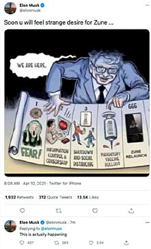 Götterdämmerung (2): Wenn man sich vorstellt, dass die Multimilliardäre die Götter der Gegenwart sind, und jeder nun mit ansehen darf, wie sie den Endkampf unter sich ausfechten, drängen sich Parallelen auf.Götterdämmerung (3): Dass Bill Gates offenbar auf der Abschussliste der Titanen steht, fiel mir im Frühjahr auf. Jetzt fand ich einen weiteren Hinweis von Elon Musk, der, ins Olympische gewendet, als Hallodri unter den Göttern an der Spitze des Verfolgerfelds steht. Selbst wenn der Tweet ein Fake sein sollte, beschreibt er die Position der Kontrahenten ziemlich zutreffend.