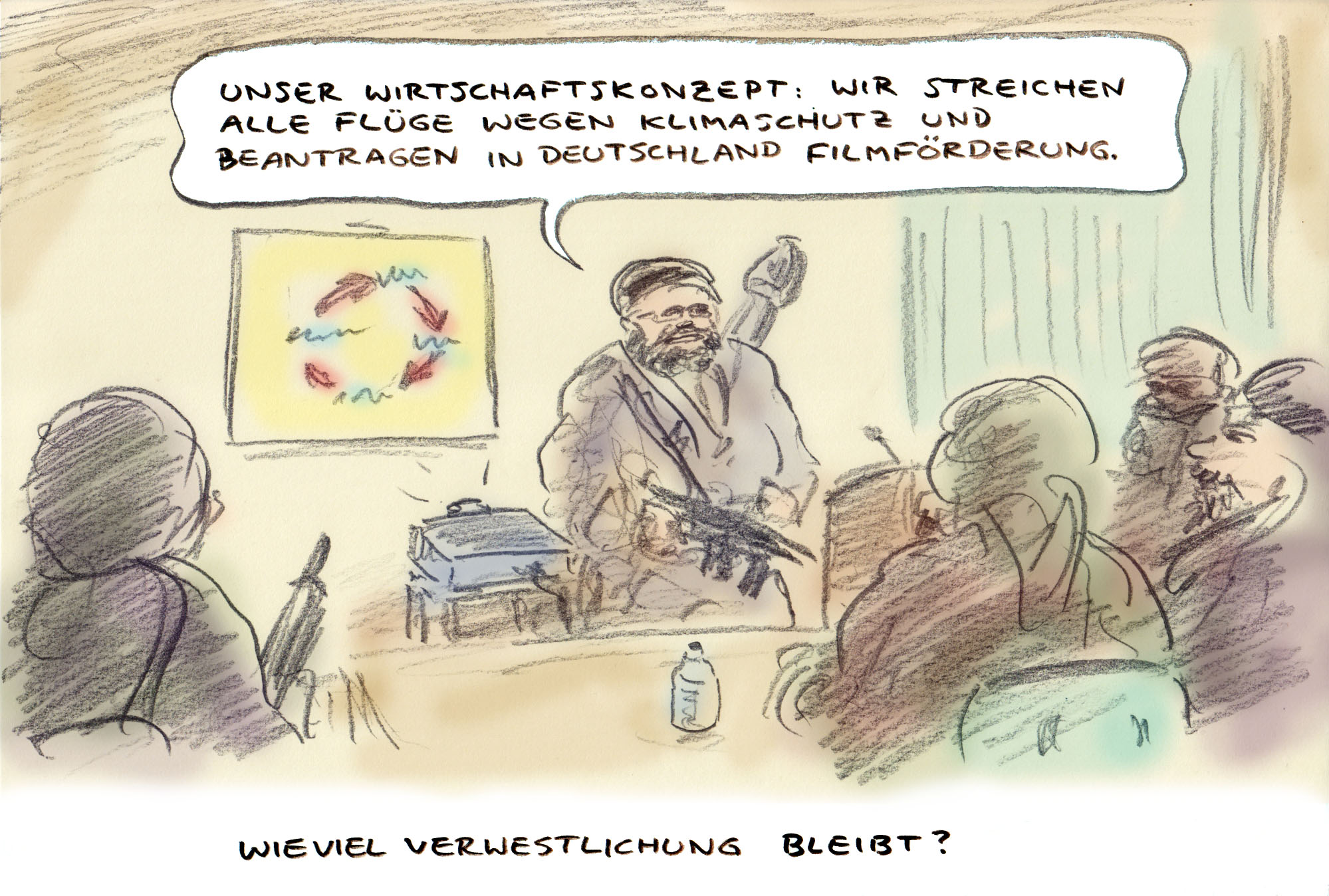 Im Moment befindet sich der Taliban-Experte auf der Überholspur. Wenn in seinen Ausführungen von Islamistinnen die Rede ist, so reizt das, ihm zuzurufen: Kuck denen mal unter den Kittel. Wenn du anschließend den Kopf noch heben kannst, dann weißt du Bescheid.Man erinnert sich: Vor einiger Zeit wurde unsere Freiheit am Hindukusch verteidigt. Das wurde jetzt abgeblasen, um das verräterische Wort Freiheit aus der Debatte zu verbannen. Ist einfach nicht mehr zeitgemäß. Wie sagen doch die Labermäuler seit Jahren? „Wir müssen die Menschen abholen.“ Wie wahr, wie wahr.