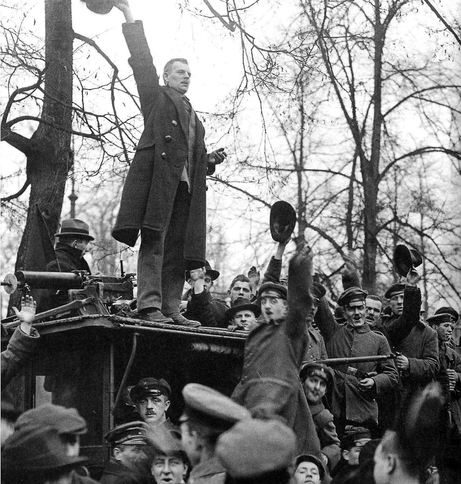 Fake macht Spaß: Eine bisher unerprobte Quelle meldet, dass die Linke, um ein Zeichen zu setzen, ihren früheren Vorsitzenden in Wilhelm Pieks hat umbenennen lassen. Das Bild zeigt ihn (noch als Wilhelm Pieck) im Januar 1919 in Berlin, wo er auf offener Straße ein Hoch auf Rätedeutschland ausbringt. Nicht im Bild: Kurz zuvor stand er auf dem Flur des Berliner Hotels, in dem die Gardekavallerie-Schützendivision ihr Hauptquartier aufgeschlagen hatte. Es war der Moment, als die Genossen Rosa Luxemburg und Karl Liebknecht aus ihren Verstecken herausgeholt worden waren und als Gefangene dort eingeliefert wurden, um nach kurzer Identifizierung ihrer Ermordung entgegenzugehen. Lange Zeit habe ich mich gefragt, wer sie wohl verpfiffen und sodann identifiziert haben mochte.