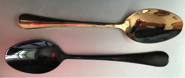 4. Gesellschaftslehre/Politik: Beschreibe den Unterschied zwischen den beiden Löffeln, ohne eine Farbe zu erwähnen.