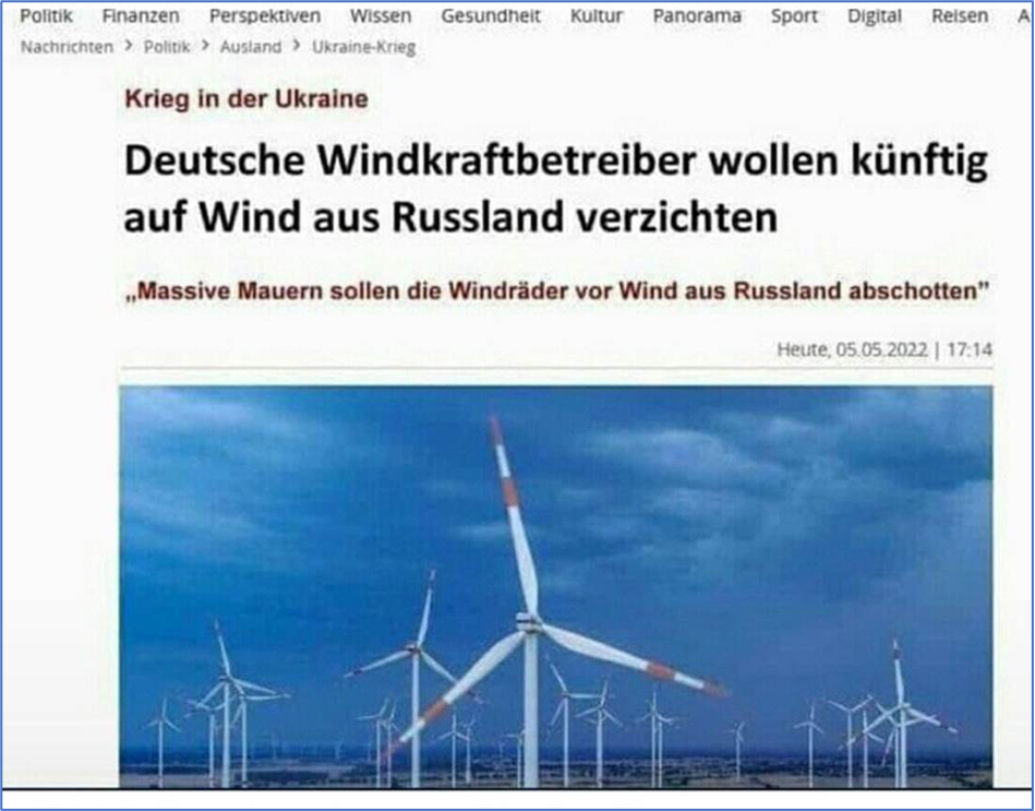 Konsequenz: Weil die Propeller nicht ausreichen – und vom physikalischen Prinzip auch nicht ausreichen können – den Energiebedarf Deutschlands auch nur vage zu decken, will Klimaminister Habeck den Aufbau der Propeller vorantreiben. Nächste Woche will er das Programm verkünden. Wer idiotischer Weise geglaubt hatte – ich gehörte nicht dazu –, die Realität würde die grünen Narren schon noch einholen, sieht sich eines Besseren belehrt.
