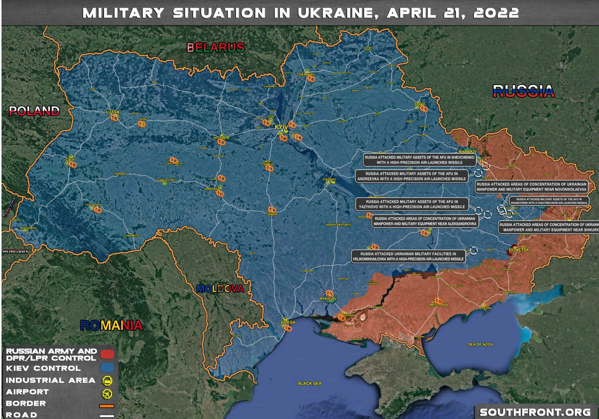 * Das russische Kriegsziel ist es, die US-Strategie zu unterlaufen und strategische Manövrierfreiheit Richtung Orient zu gewinnen. Die Geländegewinne im Dombass sind hierbei nur ein Abfallprodukt. Der eigentliche strategische Schlag findet an der Südfront statt, er betrifft die Einnahme der Städte am Asowschen und am Schwarzen Meer. Falls das richtig ist, wäre der nächste konsequente Schritt, an den Städten Nikolajew und Odessa nördlich vorbei eine Landverbindung bis zur Grenze nach Moldawien zu errichten. Dass die russische Führung sich freiwillig auf einen Straßenkampf in beiden Großstädten einlässt, mag ich mir nicht vorstellen. Wenn sie es doch tut, kann ich auch nichts daran ändern.