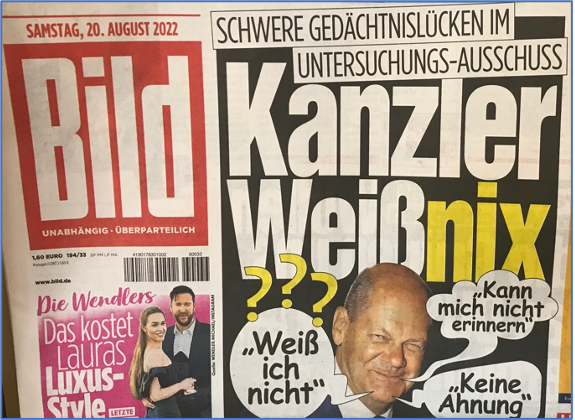Politisch unkorrekt: Der Palästinenser-Vorsitzer Abas soll sich auf einer Pressekonferenz nach Wunsch von Mainstream für das Attentat von München 1972 entschuldigen. Eine dahingehende Reporterfrage beantwortet er so, dass es da nichts zu entschuldigen gebe, vielmehr sei zu bedenken, dass Israel einen vielfachen Holocaust auf dem Gewissen habe. Diese boshafte Provokation ist kein Wunder aus seinem Mund. Bemerkenswert hingegen ist es, dass der daneben stehende Bundeskanzler zu diesen Schmähworten schweigt.Schweigen (2): Vielleicht dachte Scholz, das Schweigen sei die klügste Reaktion auf die Unflätigkeit. Vielleicht dachte er auch infolge seiner bewundernswert langen Leitung gar nichts. Doch im Ergebnis lag er schief, denn sofort tobte Mainstream gegen ihn los. Ein neuer Fall Scholz wurde geboren. Nehme an, dass die grünschillernde Journaille sich in der Hoffnung wiegt, das Abschießen von Scholz wäre die letzte Stufe, um dem Robert und der Annalena das Kanzleramt zu öffnen. Illusionen.